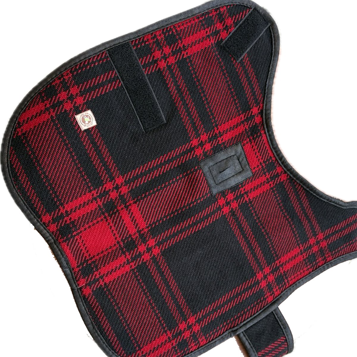 ブラック&レッドチェック柄のドッグブランケットコートです。